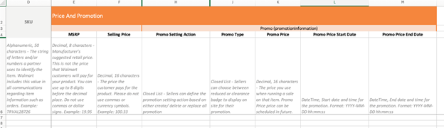 If you're submitting a basic price update, only the first two fields - SKU and Selling Price are required.