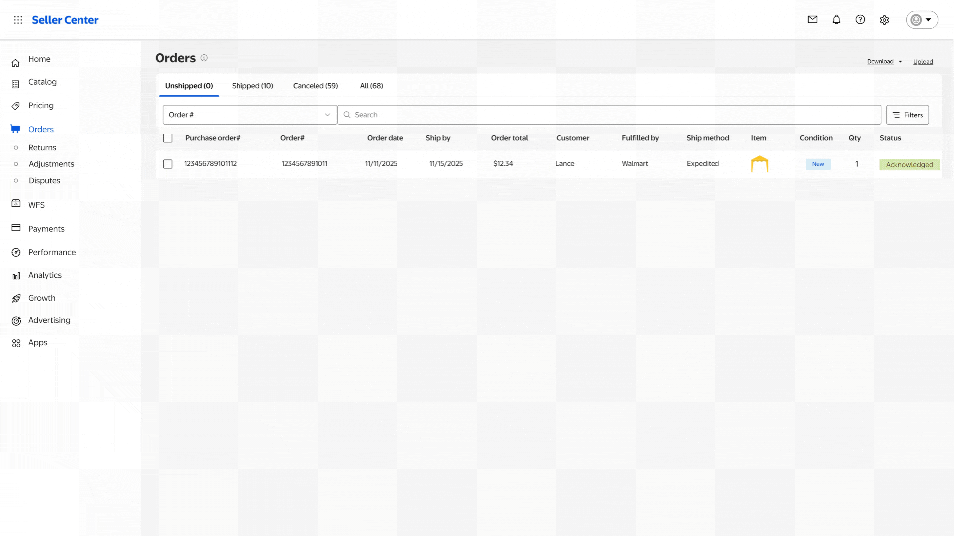 For an overview of how to navigate the Order Management Dashboard, please review the Order Management Dashboard in Seller Center article.