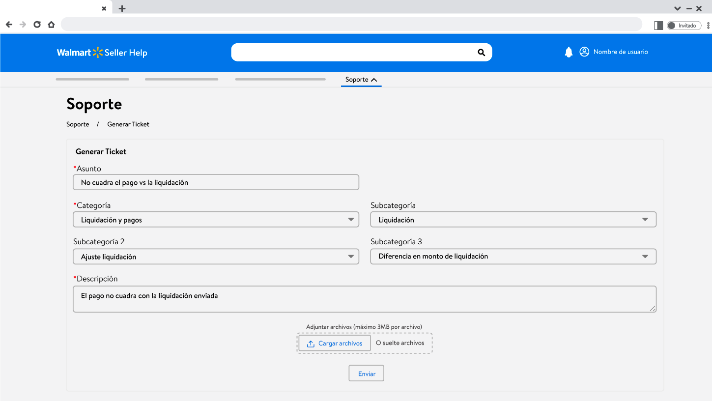 Read the following steps to learn how to create a Dispute Ticket (Ticket de Disputa) about Settlement and payment and Returns and Refunds.