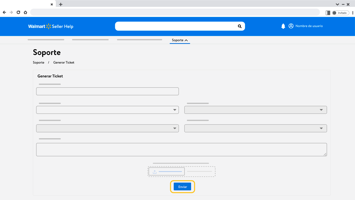 Select Soporte (Support) in the menu and click on Crear Ticket (Create ticket).