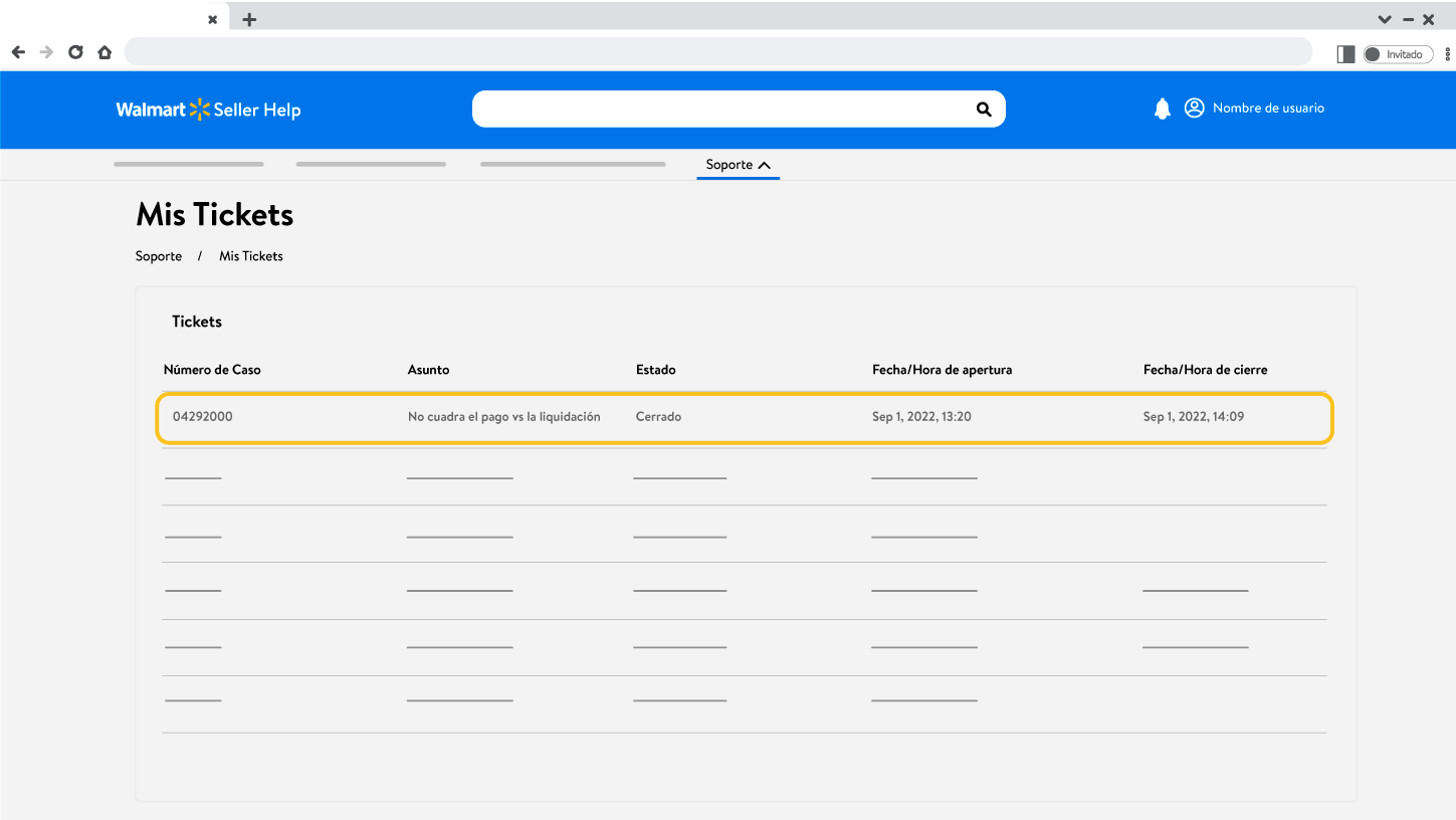 Notas del ticket (ticket notes) | You can interact with the team specialist in charge of your case. Also, you’ll have the choice of adding files that support your case. |
