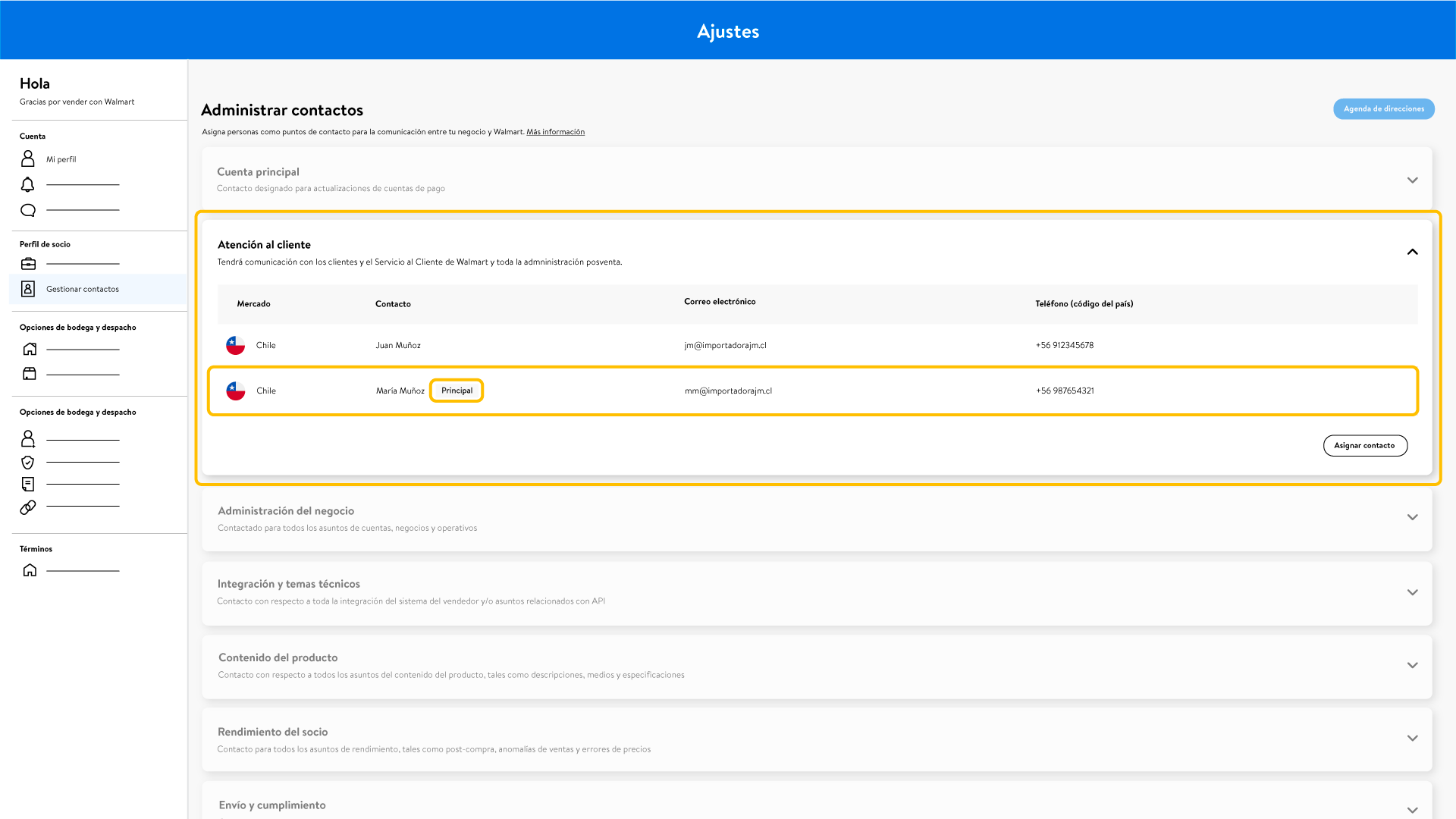 Mantener actualizados los datos de contacto de tu empresa, es fundamental para que la comunicación con Walmart Marketplace Chile sea eficaz y oportuna.