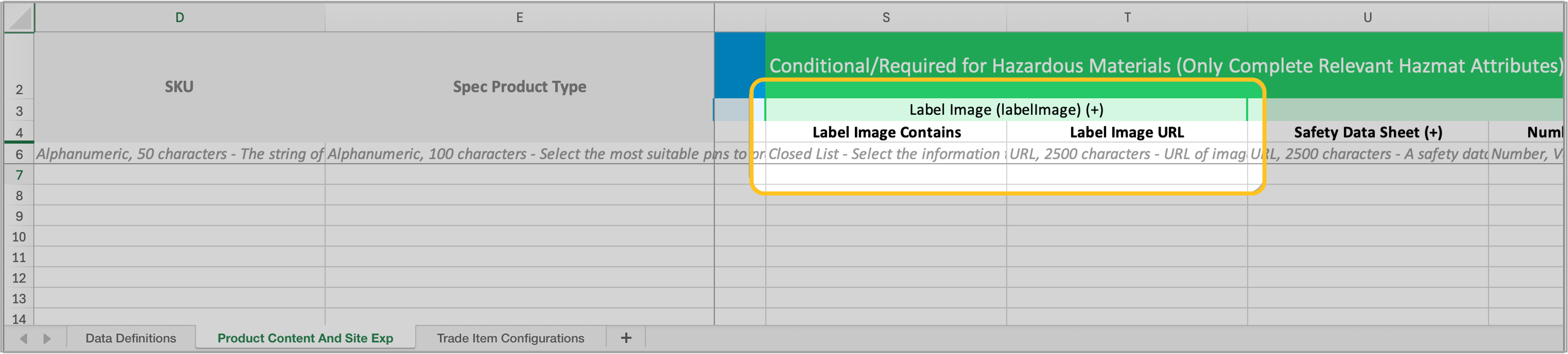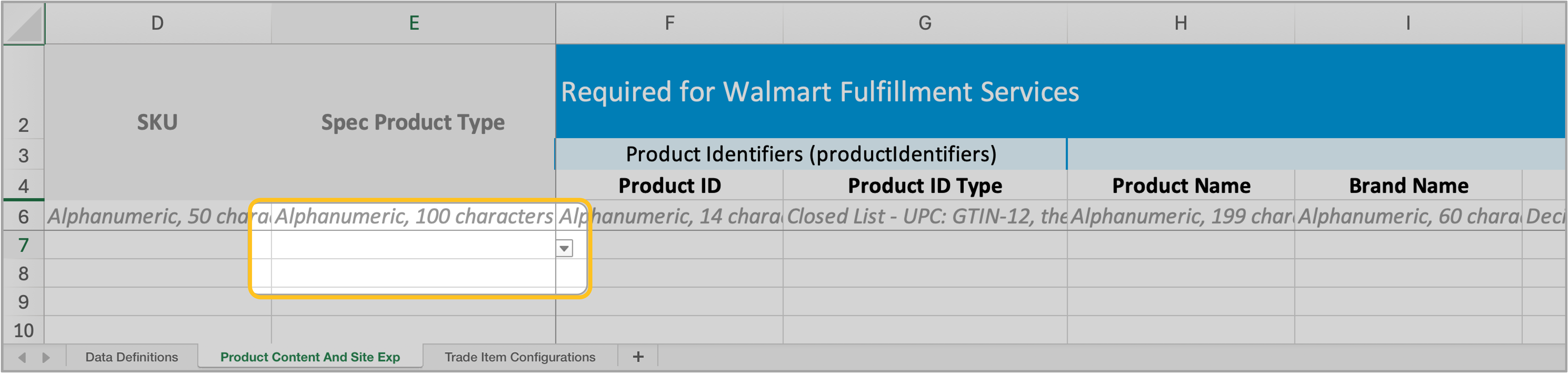 If you only have one product type, the template won’t have the Conditionally Required Based on Product Type section. Those fields will be combined with other sections instead.