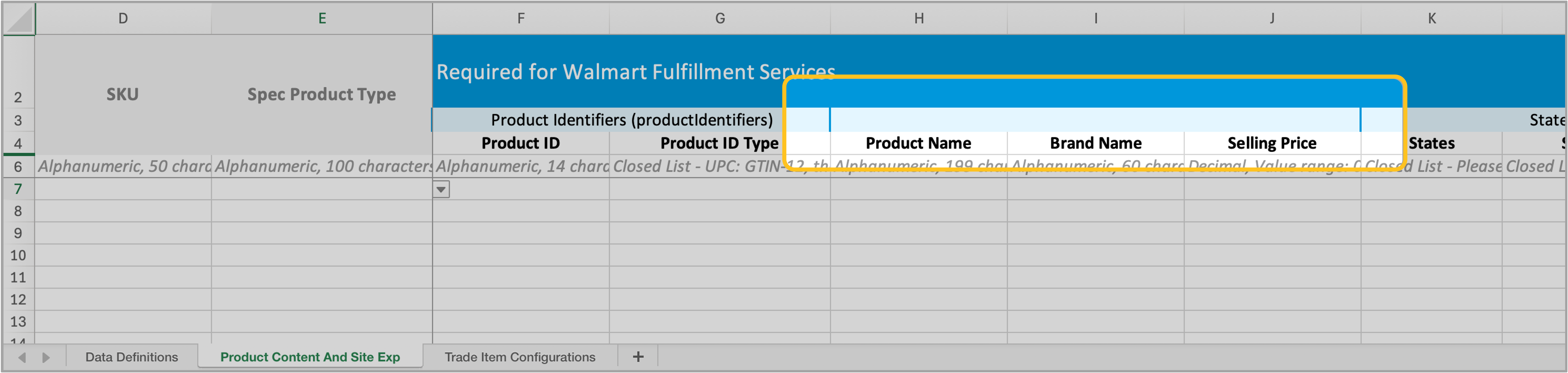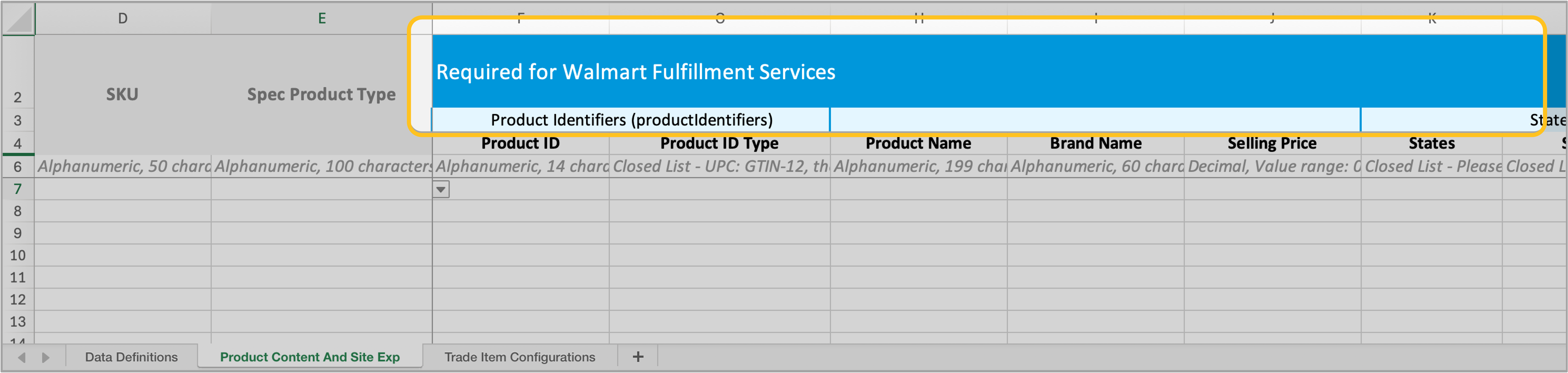 To add or convert multiple items to your WFS catalog, you’ll download a template and fill in item details. In this guide, you’ll learn how to add required information for Walmart-fulfilled items to the template.