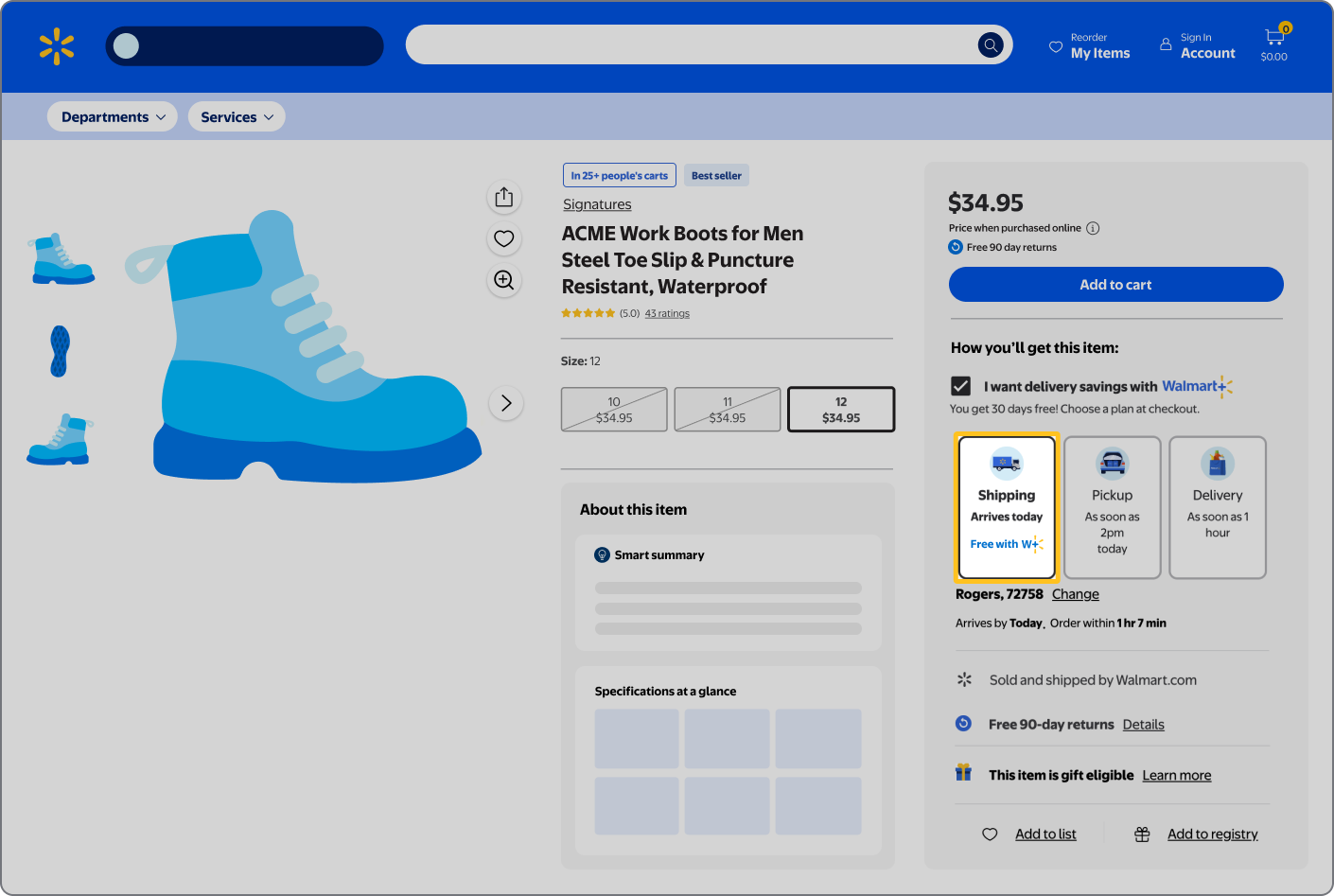 Below is an illustrative example of how the Walmart+ badge will appear: