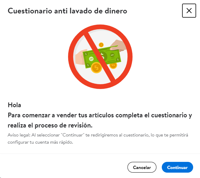 Para poder crear tus productos, deberás esperar a tener la verificaciĂłn de estos tres pasos y completar nuestro cuestionario “Antilavado de dinero”, para esto da click en el botĂłn "Agregar ArtĂculos"