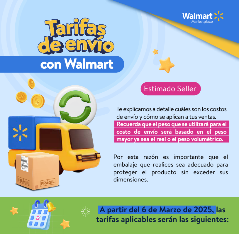 EnvĂos con Walmart te permite optimizar la entrega de tus productos de manera eficiente y segura. Tenemos alianzas con las principales paqueteras de MĂ©xico además de contar con nuestra propia flota de transporte, todo esto con el propĂłsito de garantizar la entrega de tus productos y mejorar continuamente la experiencia del vendedor y del cliente.Â