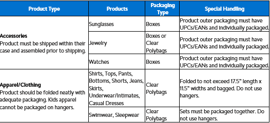 Packaging inserts and other forms of marketing materials are acceptable, while they should not be designed specifically for the other non-Walmart Fulfillment Services platforms. For products that are not properly prepared and packaged, shipping may result in you being liable for handling charges, which will be determined on an individual basis. All products must meet Walmart's packaging and labeling requirements